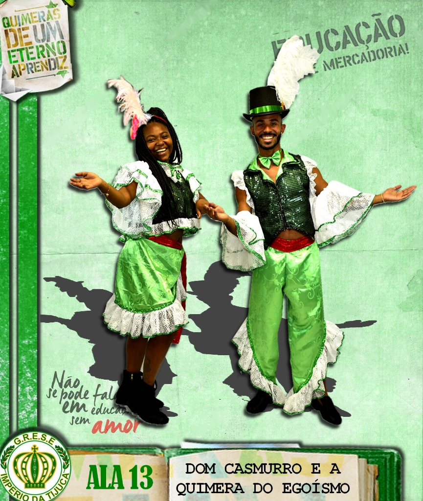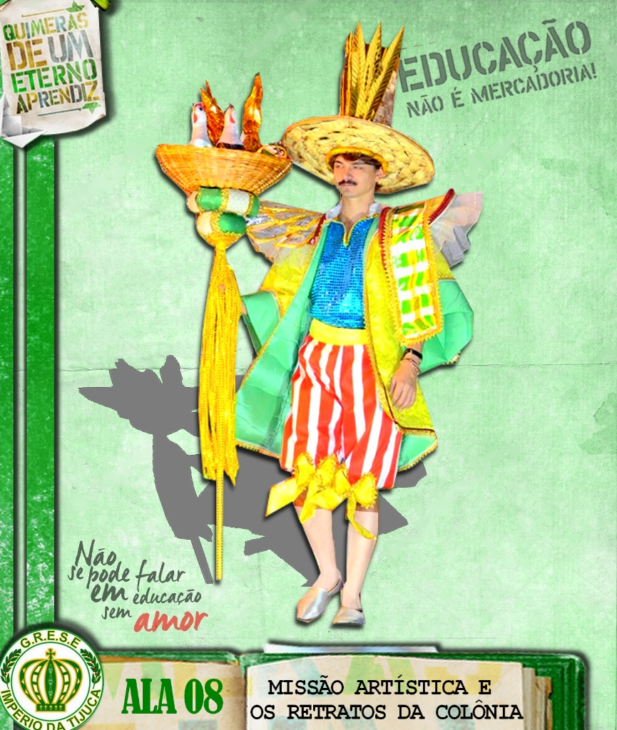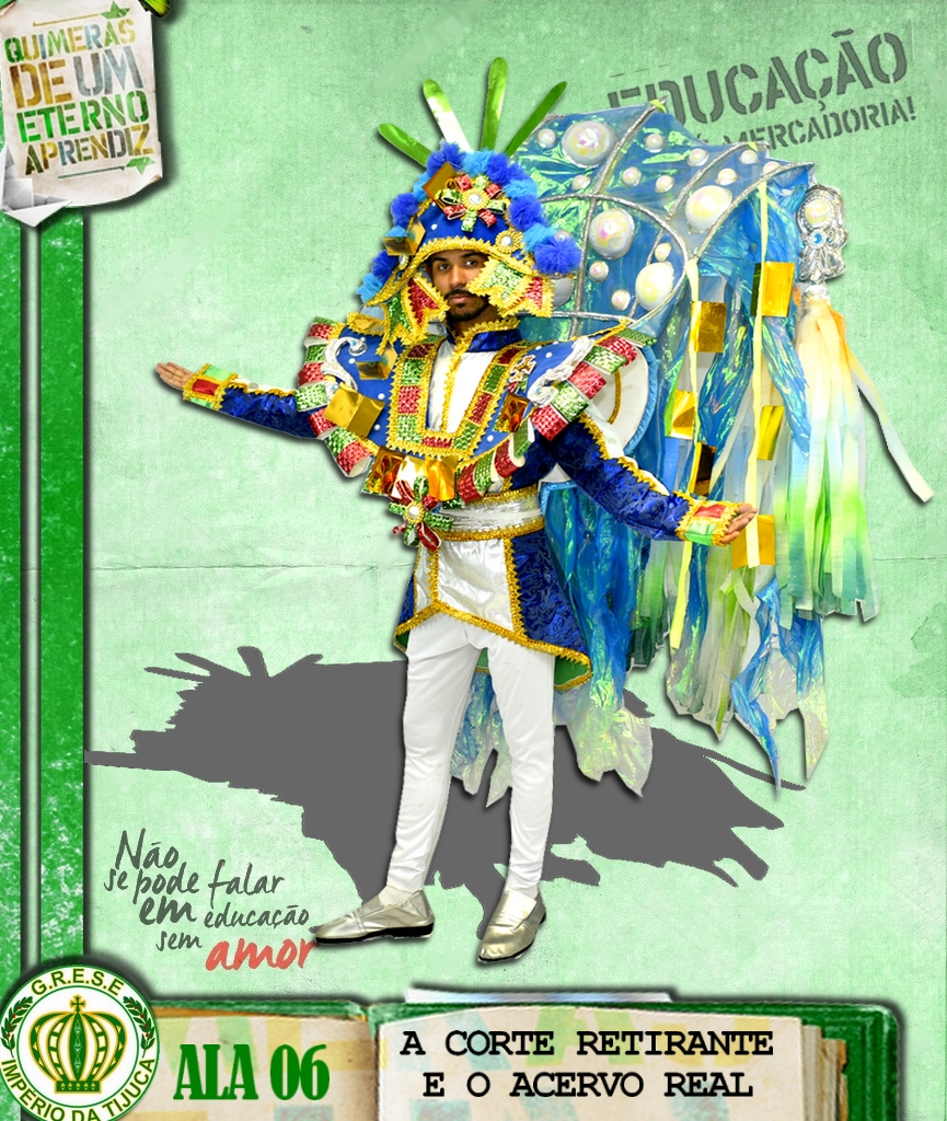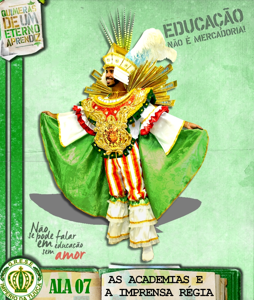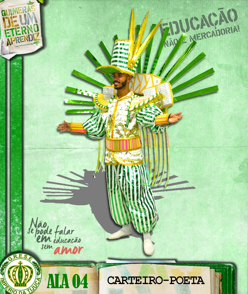 A Império da Tijuca divulgou as fantasias comerciais para o Carnaval 2020, quando apresentará o enredo “Quimeras de um eterno aprendiz” de desenvolvimento do carnavalesco Guilherme Estevão.